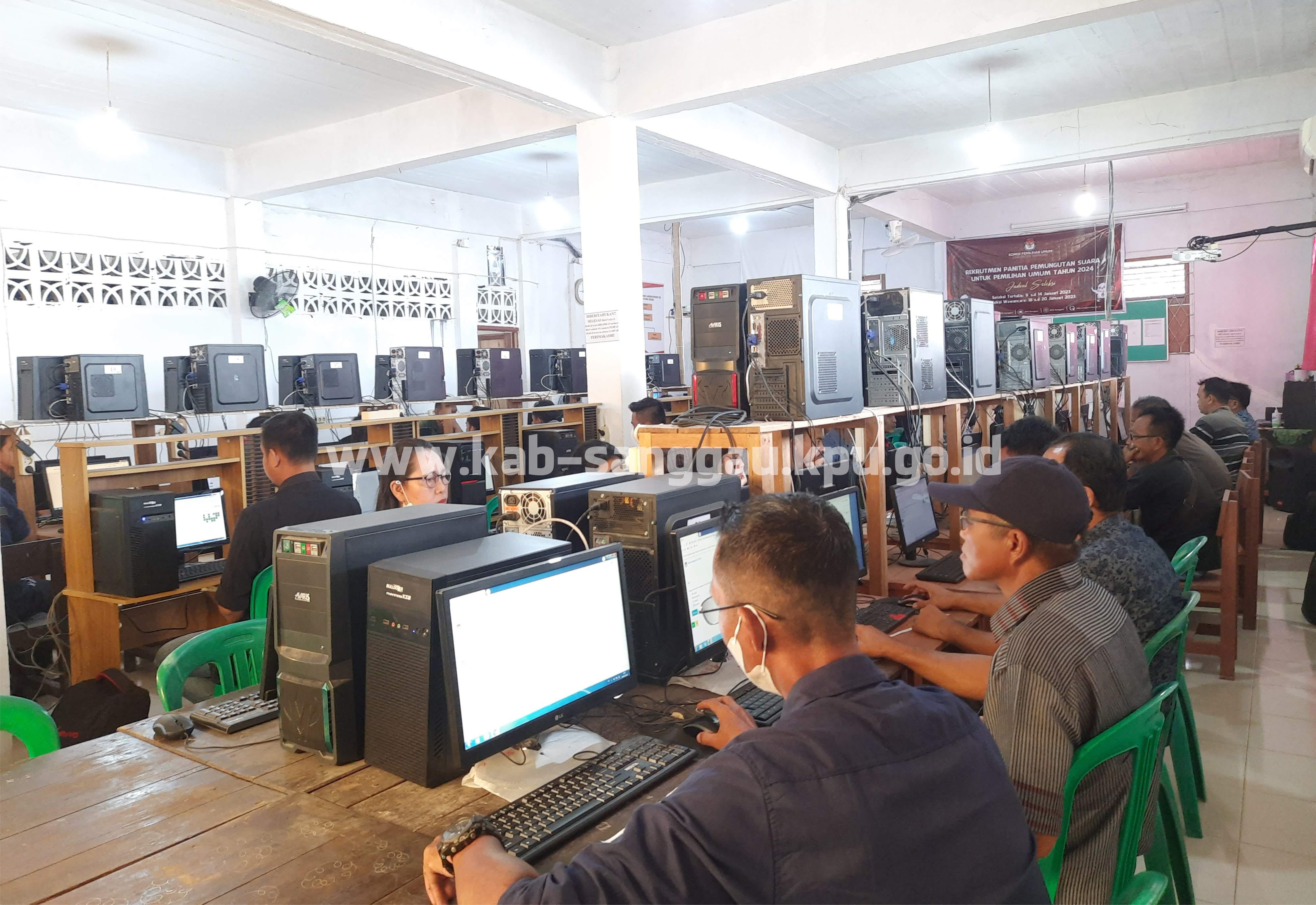 Sanggau, kab-sanggau.kpu.go.id | KPU Kabupaten Sanggau melaksanakan tes tertulis berbasis Computer Assited Test (CAT) Bagi para calon anggota Panitia Pemungutan Suara (PPS). Pelaksanaan test CAT dimulai Senin 9 Januari 2023 hingga Sabtu 14 Januari 2023. Sebanyak 1049 orang calon anggota PPS dari 169 desa/kelurahan se Kabupaten Sanggau mengikuti seleksi tertulis ini dengan pembagian 3 gelombang pelaksanaan.