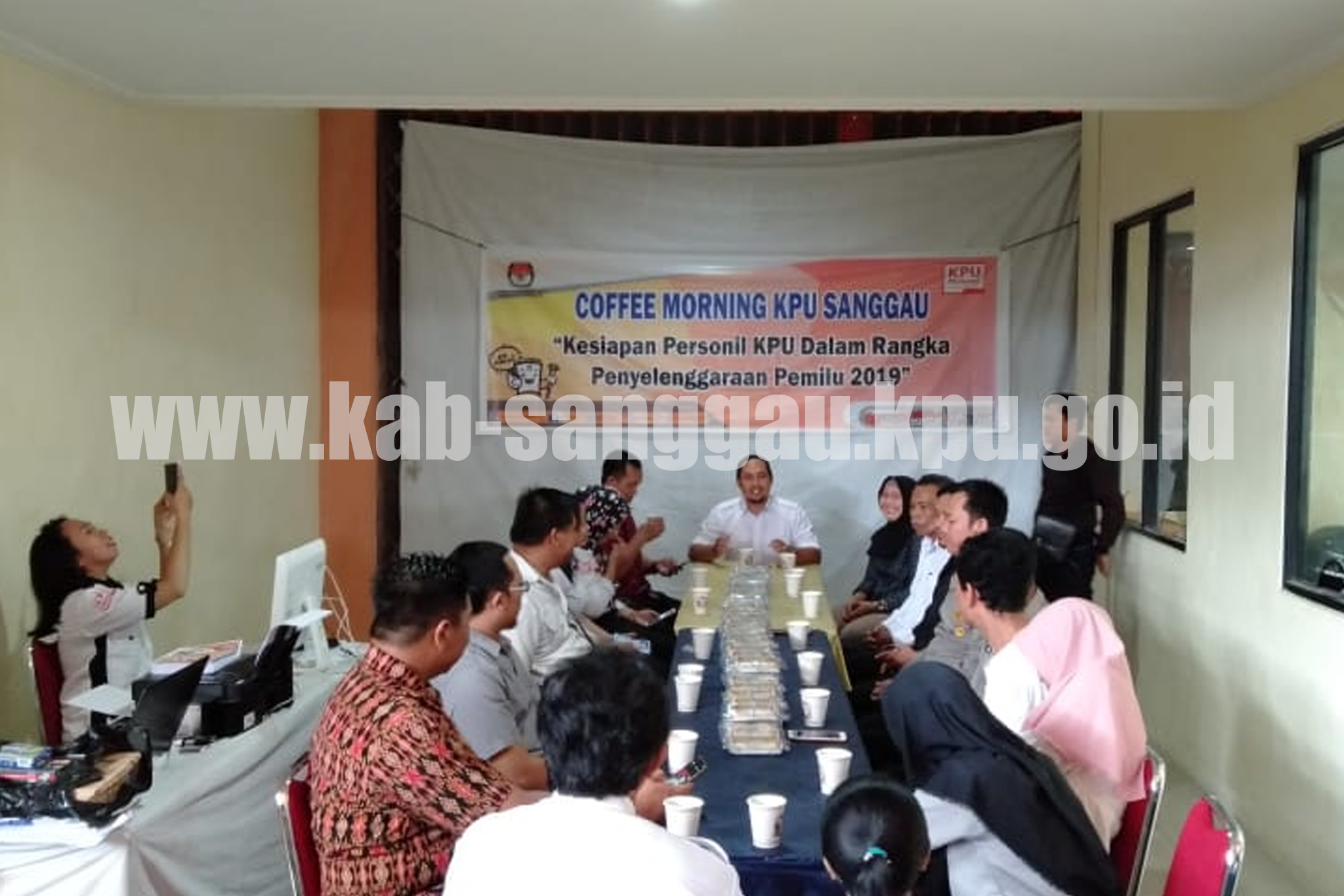 Sanggau, kab-sanggau.kpu.go.id | Sesuai arahan KPU RI, setelah melaksanakan apel rutin senin, jajaran KPU Kabupaten Sanggau melaksanakan coffe morning kesiapan KPU menghadapi pemungutan suara 17 April mendatang, Senin (01/04/2019) pagi.