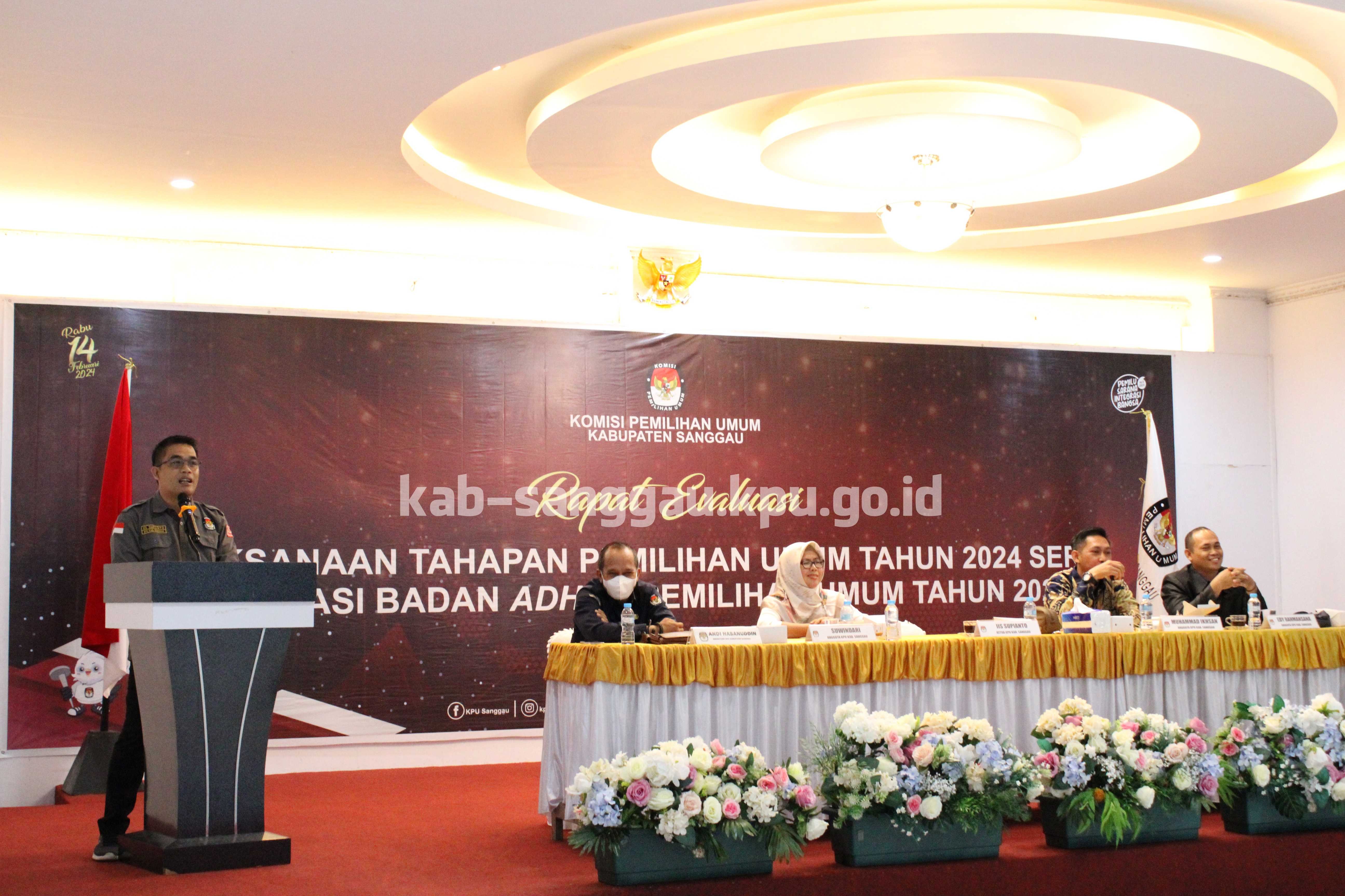 Sanggau, kab-sanggau.kpu.go.id | Komisi Pemilihan Umum Kabupaten Sanggau menyelenggarakan Rapat Evaluasi Pelaksanaan Tahapan Pemilu Tahun 2024 Serta Evaluasi Badan Ad Hoc Pemilihan Umum Tahun 2024, Selasa (23/04/2024) pagi, bertempat di Hotel Garden Palace Sanggau