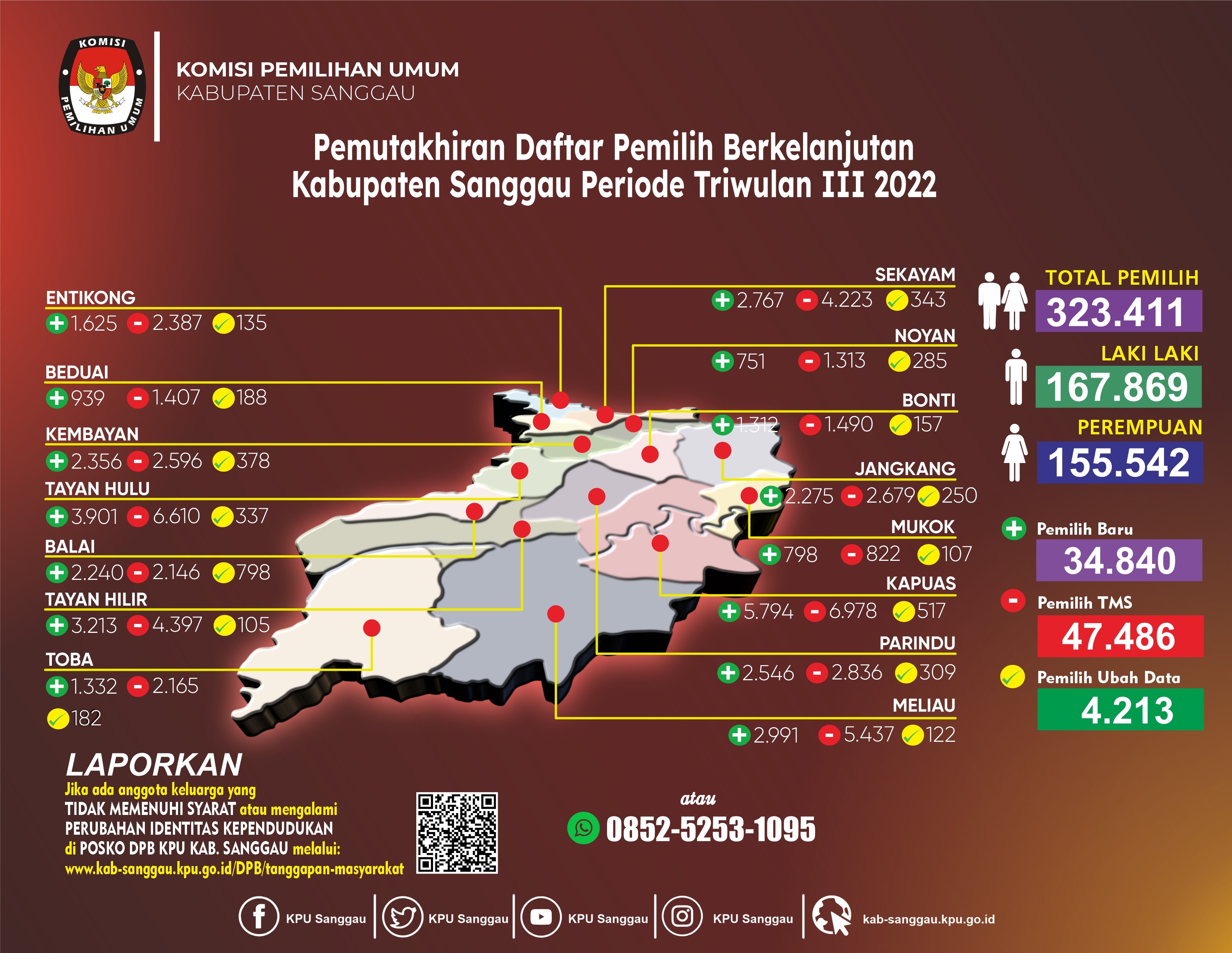 #TemanPemilih berikut info grafis rekapitulasi DPB periode Triwulan III Tahun 2022 KPU Kabupaten Sanggau