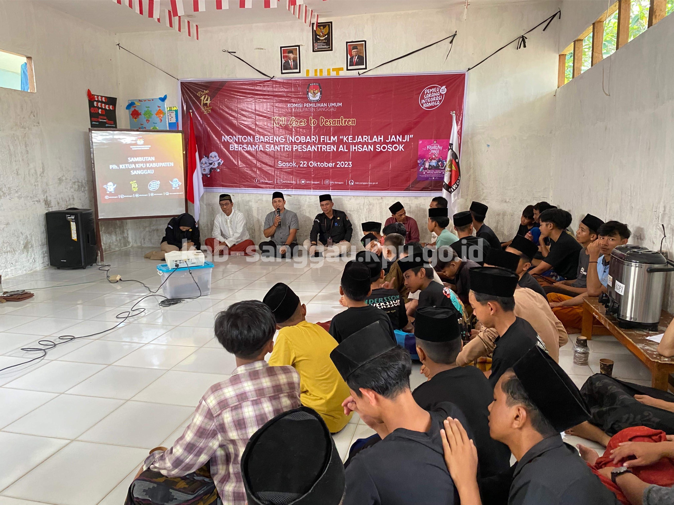 Sosok, kab-sanggau.kpu.go.id | Dalam rangka memperingati Hari Santri Tahun 2023 @kpu_ri menggelar nonton bareng film KejarlahJanji bersama santri di pondok pesantren yang dilaksanakan serentak diseluruh Indonesia, Minggu (22/10/2023) siang.