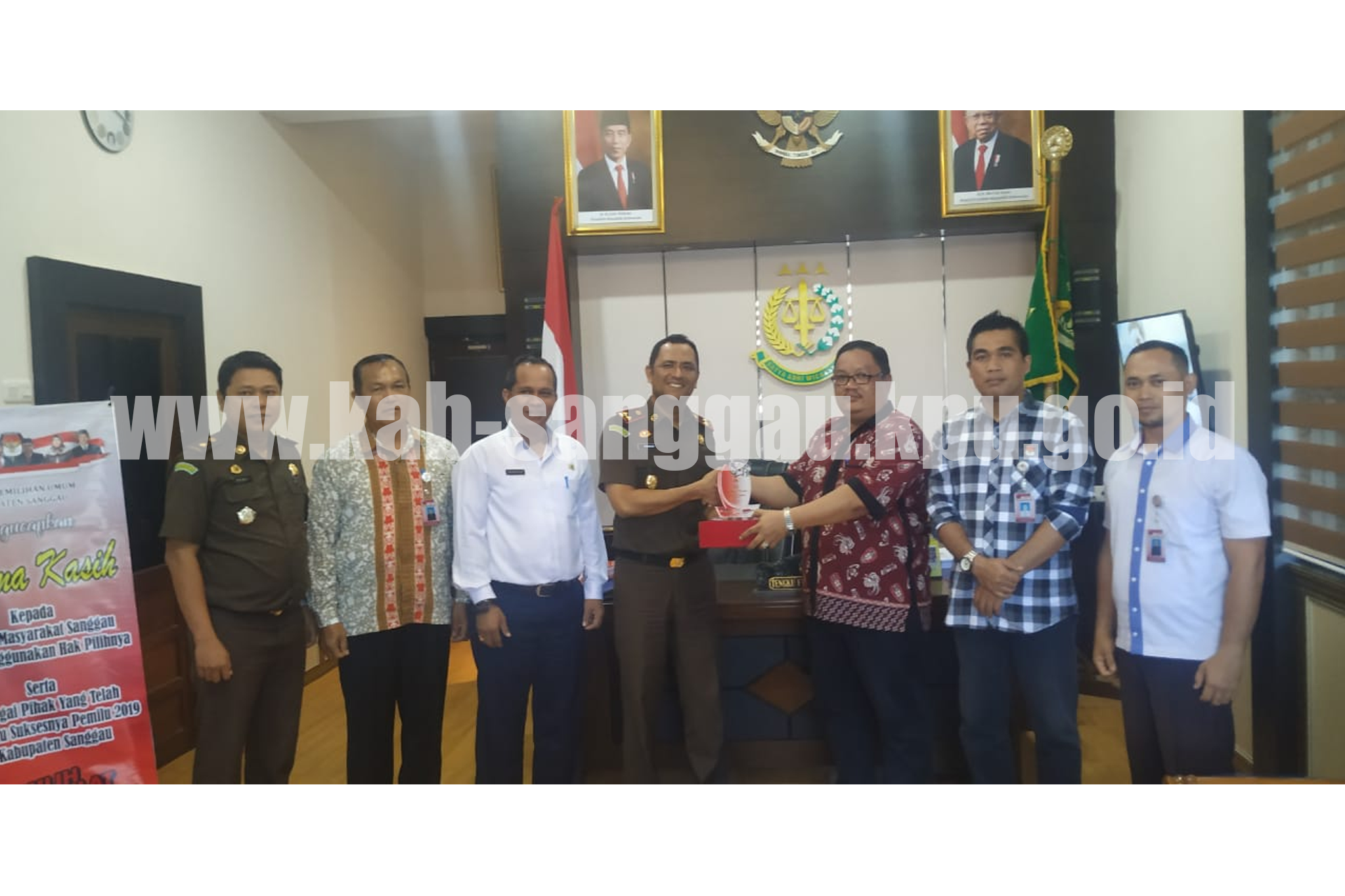 KPU Kabupaten Sanggau memberikan Plakat dan Buku Informasi Pemilu Tahun 2019 di Kabupaten Sanggau kepada Pengadilan Negeri Sanggau dan Kejaksaan Negeri Sanggau sebagai ucapan terimakasih telah mendukung dan menyukseskan Pemilu Tahun 2019 Di Kabupaten Sanggau. Penghargaan ini diserahkan langsung oleh Ketua KPU Kabupaten Sanggau bersama Komisioner dan Sekretaris KPU Kabupaten Sanggau. | Humas KPU Sanggau