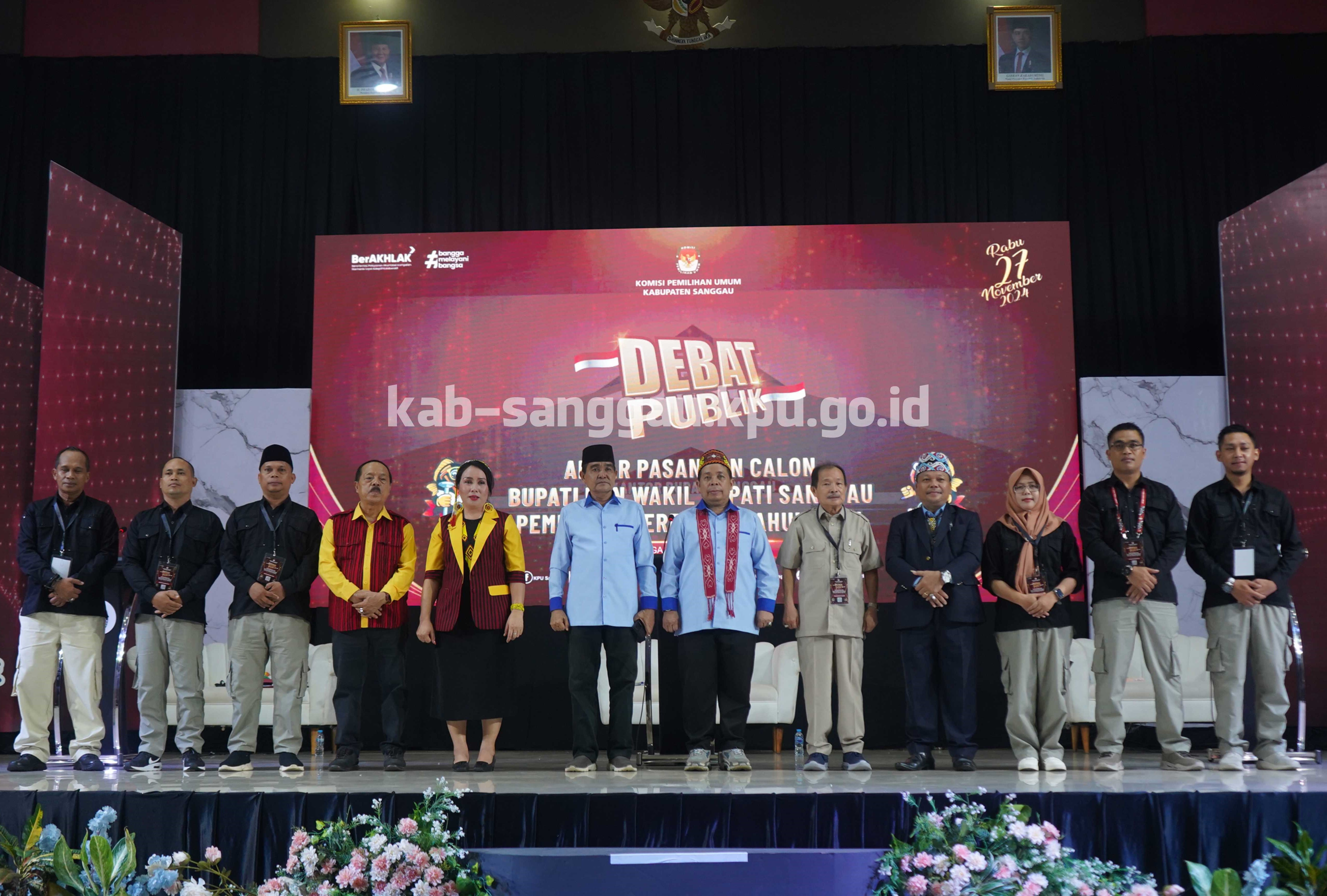 Sanggau, kab-sanggau.kpu.go.id I KPU Kabupaten Sanggau menggelar Debat Publik antar Pasangan Calon Bupati dan Wakil Bupati Sanggau Peserta Pemilihan Bupati dan Wakil Bupati Sanggau Tahun 2024 dengan tema “Tata Kelola Pemerintahan dan Ekonomi, Infrastruktur dan Pertambangan, Pendidikan, Kesehatan dan Pelayanan Kebutuhan Dasar, Perkebunan, Lingkungan Hidup dan Pariwisata, Perbatasan dan Ketersediaan Lapangan Pekerjaan Untuk Generasi Z dan Perlindungan Terhadap Perempuan dan Anak”, bertempat di Gedung Balai Betomu Sanggau, Rabu (06/11/2024) malam.