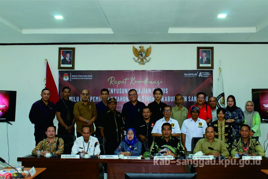 Sanggau, kab-sanggau.kpu.go.id I Komisi Pemilihan Umum (KPU) Kabupaten Sanggau melaksanakan Rapat Koordinasi Penyusunan Kajian Teknis Pemilu dan Pemilihan Tahun 2004 tingkat Kabupaten Sanggau yang berlangsung pada Kamis (28/08/2025) pagi bertempat di aula kantor KPU Kabupaten Sanggau.