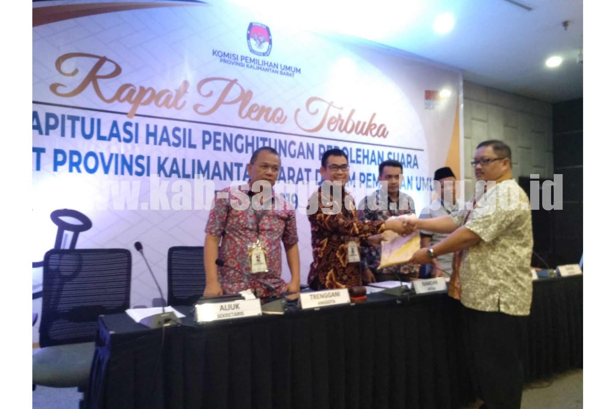 Pontianak, kab-sanggau.kpu.go.id | Komisi Pemilihan Umum Kabupaten Sanggau telah menyelesaikan proses rekapitulasi penghitungan perolehan suara tingkat Provinsi Kalimantan Barat, Kamis (09/05/2019) malam, bertempat di Hotel Grand Mercure Jl. A. Yani Pontianak.