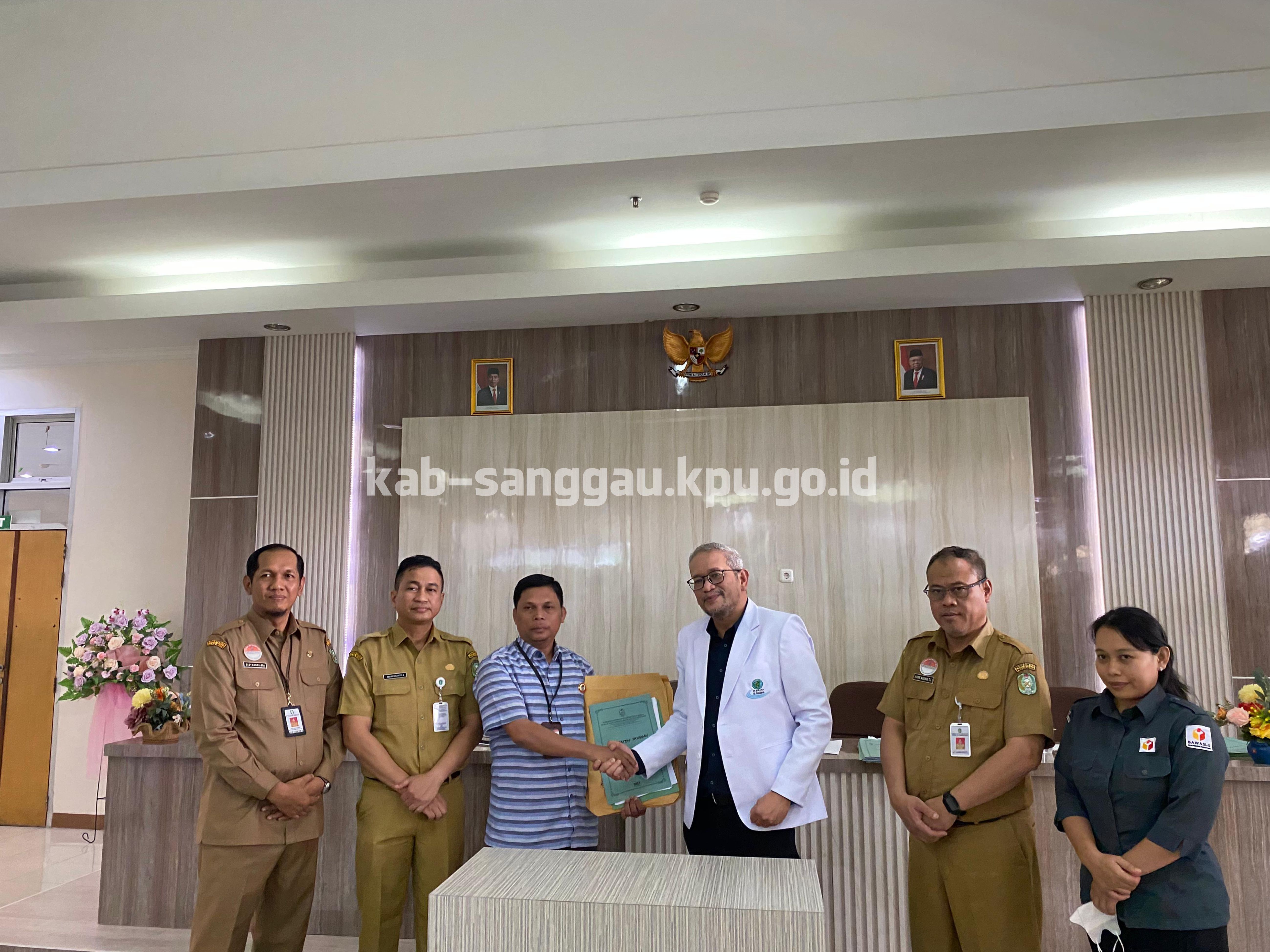Pontianak, kab-sanggau.kpu.go.id I KPU Kabupaten Sanggau menerima hasil Pemeriksaan Kesehatan Bakal Pasangan Calon Bupati dan Wakil Bupati Sanggau Pemilihan Serentak Tahun 2024 yang diserahkan oleh tim pemeriksa kesehatan Rumah Sakit Umum Daerah dr. Soedarso Pontianak, bertempat di RSUD dr. Soedarso Pontianak, Selasa (03/09/2024).