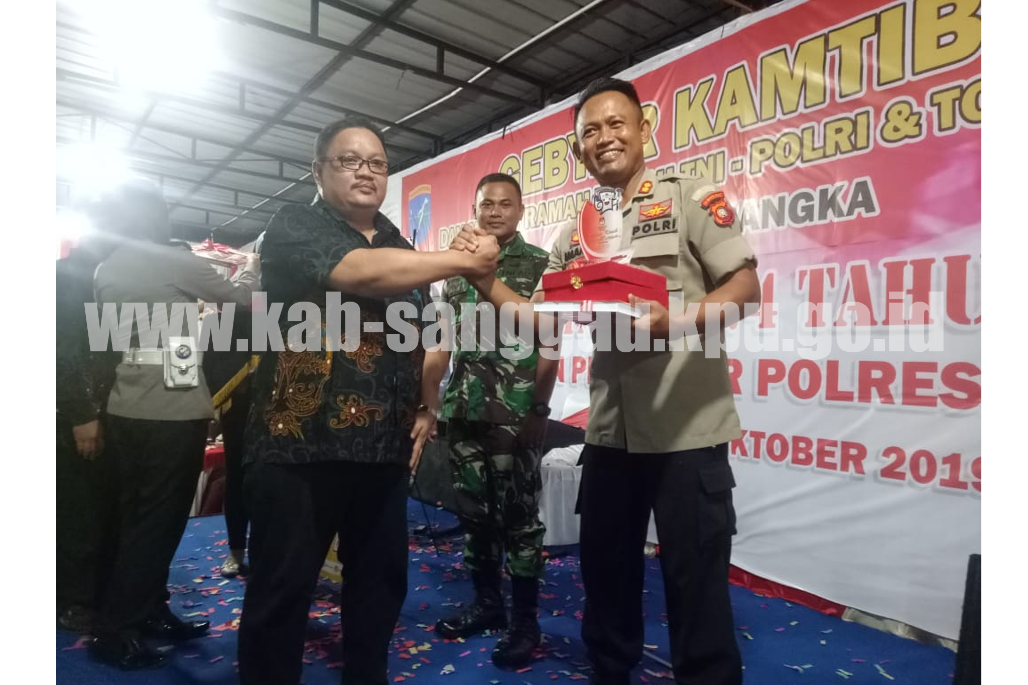 Sanggau, kab-sanggau.kpu.go.id | KPU Kabupaten Sanggau menerima penghargaan dan ucapan terima kasih dari Kapolres Sanggau pada acara Gebyar Kamtibmas dan malam ramah tamah TNI-Polri dan Masyarakat dalam rangka memeriahkan HUT TNI ke 74, dilaksanakan di halaman Polres Sanggau pada Sabtu (05/10/2020). Penghargaan tersbut diterima langsung oleh Ketua KPU Kabupaten Sanggau, Martinsu Sumarto.