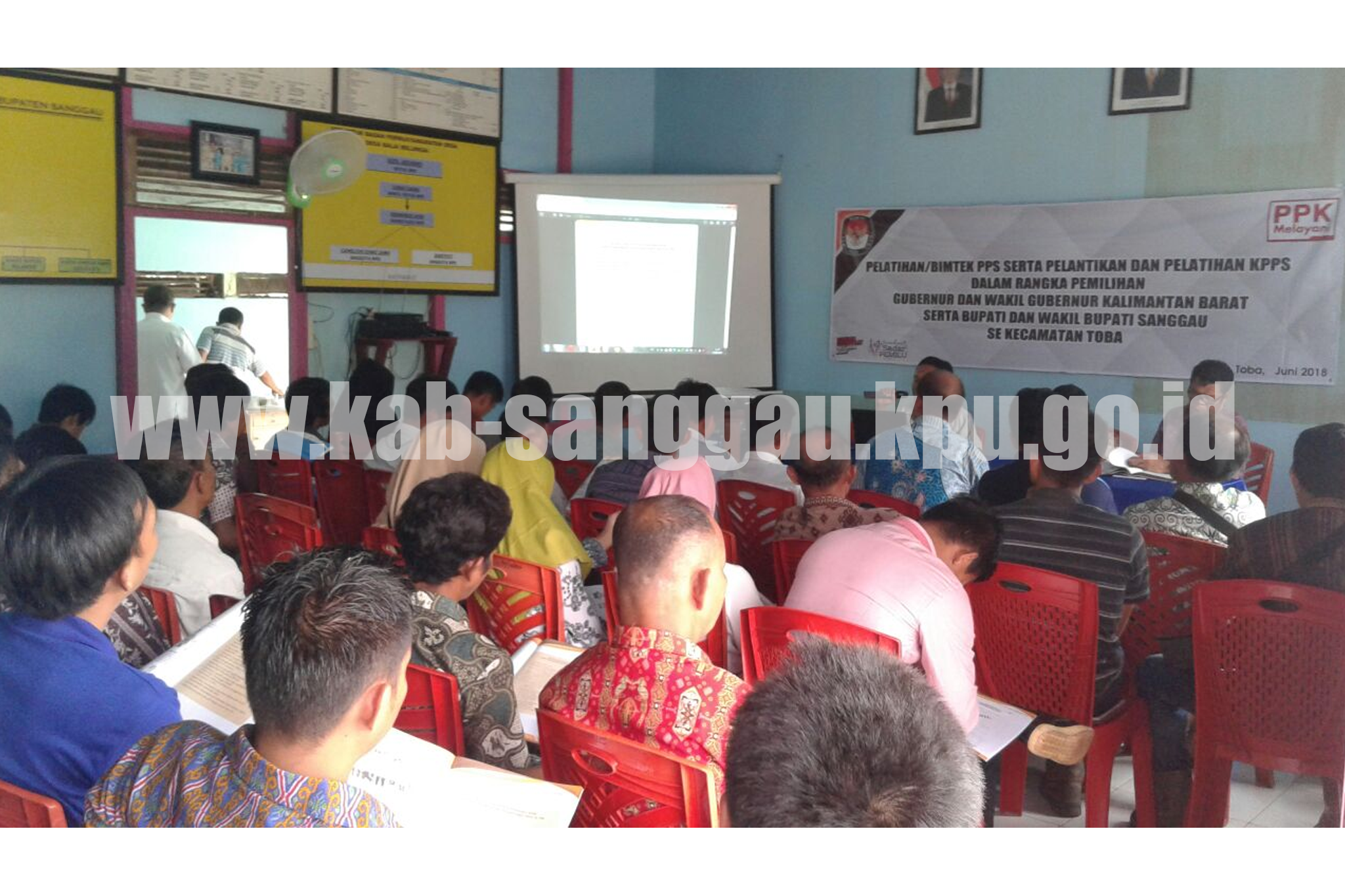 Sanggau, kab-sanggau.kpu.go.id | Komisi Pemilihan Umum Kabupaten Sanggau melalui PPK se-Kabupaten Sanggau melantik dan mengambil sumpah Ketua KPPS sekaligus memberikan bimbingan teknis (bimtek) untuk anggota Kelompok Penyelenggara Pemungutan Suara (KPPS). Berdasarkan Peraturan KPU Nomor 1 Tahun 2017 tentang Program, Tahapan dan Jadwal Penyelenggaraan Pemilihan Gubernur dan Wakil Gubernur, Bupati/Walikota dan Wakil Bupati/Wakil WalikotaTahun 2018, diimulai tanggal 13 – 26 Juni 2018 dilaksanakan bimbingan teknis pemungutan dan penghitungan suara bagi PPK, PPS dan KPPS.