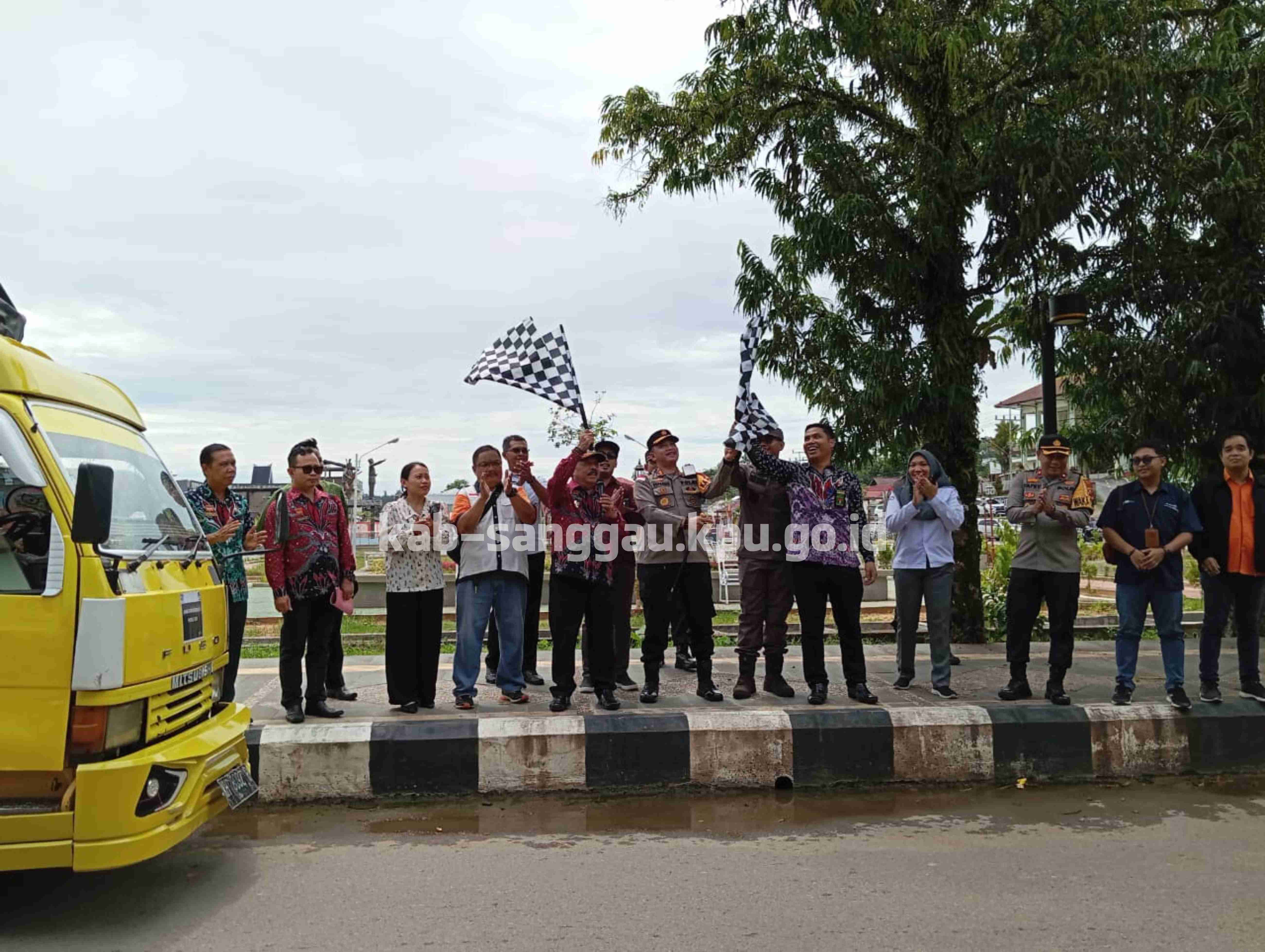 Sanggau, kab-sanggau.kpu.go.id | Plt. Bupati Sanggau Drs. Yohanes Ontot, M.Si diampingi Ketua KPU Kabupaten Sanggau Martinus Sumarto melepas keberangkatan perdana distribusi logistik Pemilu 2024 dari KPU Kabupaten Sanggau menuju Kecamatan se Kabupaten Sanggau, Kamis (01/02/2024) siang, bertempat di halaman GOR Bujang Malaka Sanggau.