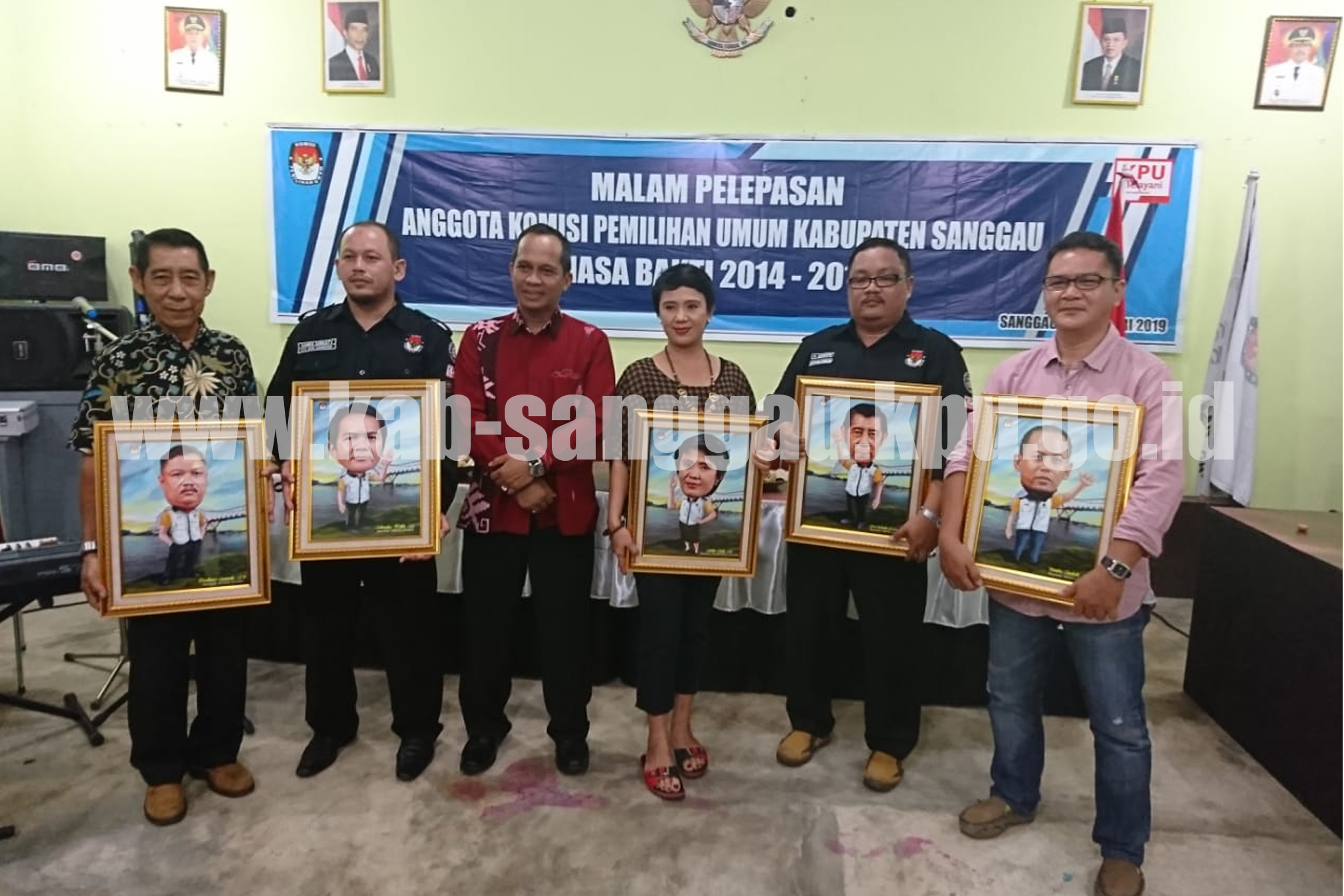 Sanggau, kab-sanggau.kpu.go.id | Suasana haru memenuhi aula Kantor KPU Kabupaten Sanggau pada acara malam pelepasan Komisioner KPU Kabupaten Sanggau masa bhakti 2014-2019, Senin (28/01/2019) malam. Sesuai Undang Undang Nomor 7 Tahun 2017 tentang Pemilihan Umum, 4 dari 5 Komisioner KPU Kabupaten Sanggau periode 2014-2019 tidak dapat lagi mengikuti seleksi calon anggota KPU Kabupaten/Kota karena sudah menjabat 2 periode, yaitu Sekundus Ritih, SE, Sisilia Sisil, SE, Drs.H. Gusti Darmuddin dan Hamka Surkati, SE. Komsioner KPU Kabupaten Sanggau Periode 2014-2019 akan berakhir pada tanggal 31 Januari 2019.