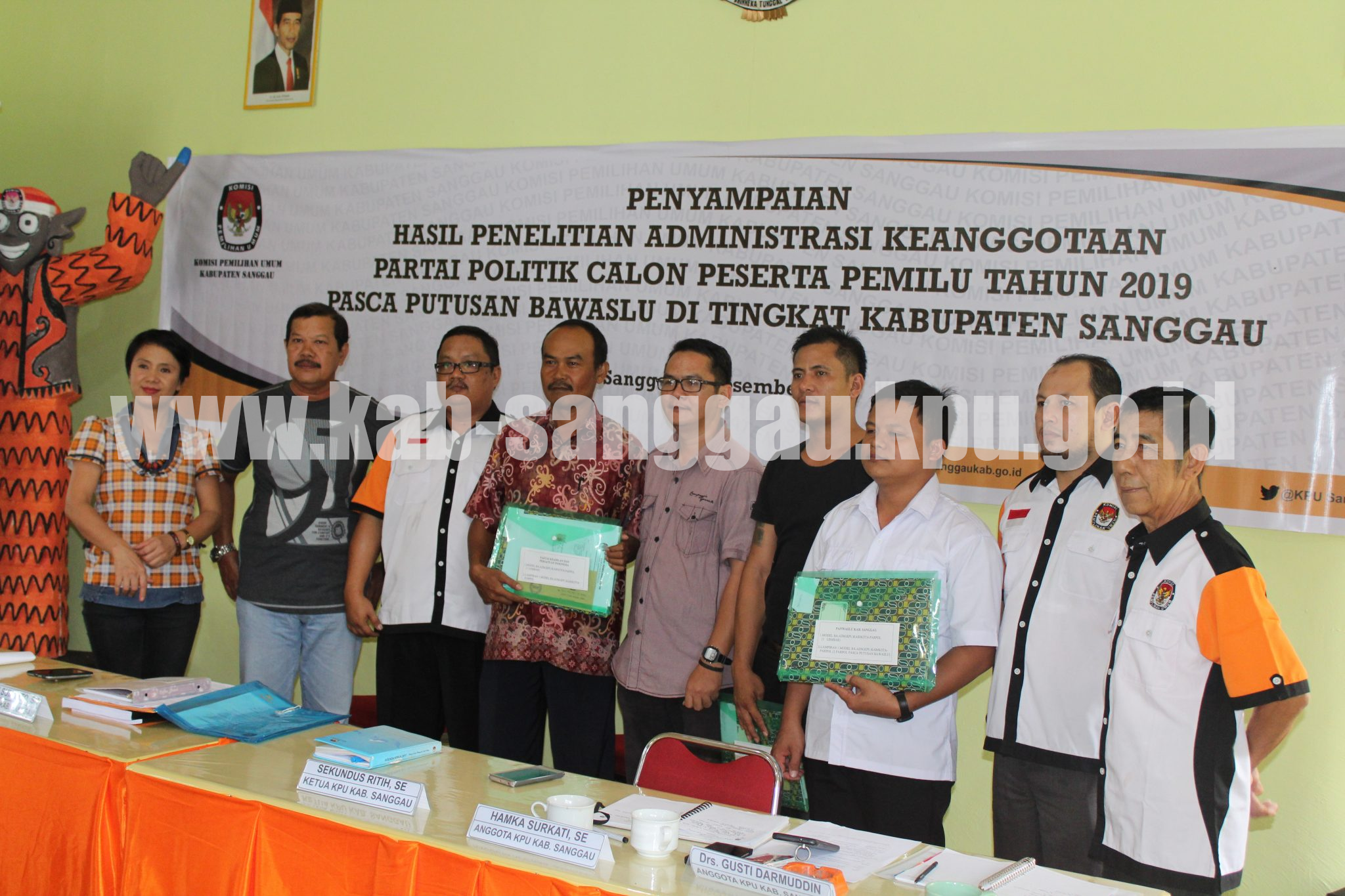 Selanjutnya partai politik tersebut harus memberbaiki berkas mereka selama 14 hari kalender. Berkas perbaikan tersebut akan diteliti kembali selama 7 hari. Acara ini juga dihadiri oleh Panwaslu Kabupaten Sanggau. | Hupmas KPU Sanggau
