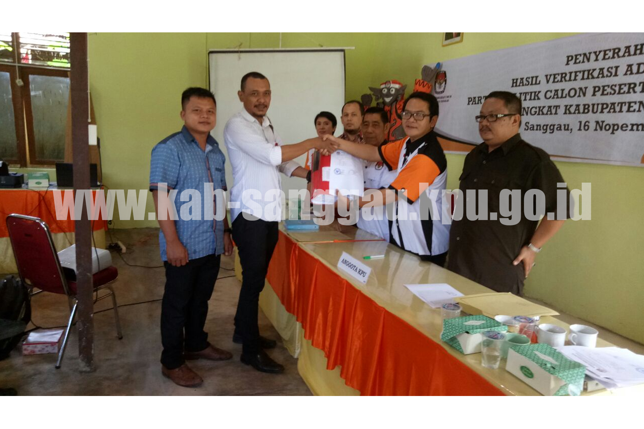 Selanjutnya KPU Sanggau menyerahkan Berita Acara Hasil Penelitian Administrasi (Litmin) kepada perwakilan Parpol dan Ketua Panwaslu Kabupaten Sanggau. | Hupmas KPU Sanggau
