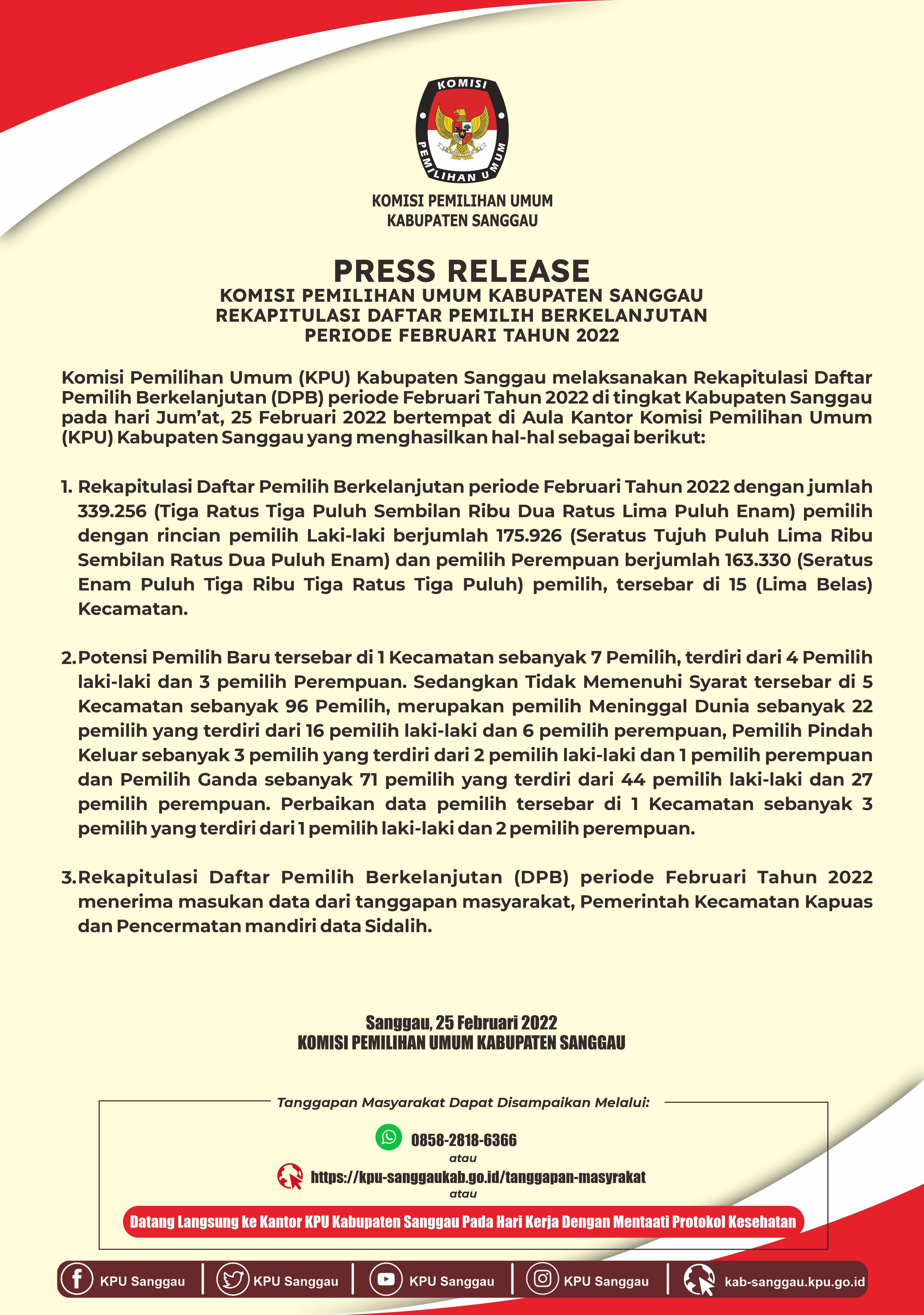 Pers Release Rekapitulasi DPB Periode Februari 2022