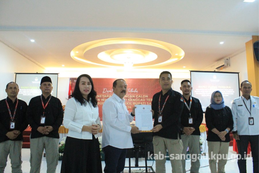 Sanggau, kab-sanggau.kpu.go.id I KPU Kabupaten Sanggau menggelar Rapat Pleno Terbuka Penetapan Pasangan Calon Bupati dan Wakil Bupati Sanggau Terpilih dalam Pemilihan Bupati dan Wakil Bupati Sanggau Tahun 2024 di Hotel Garden Palace Sanggau, Kamis (09/01/2025) pagi.