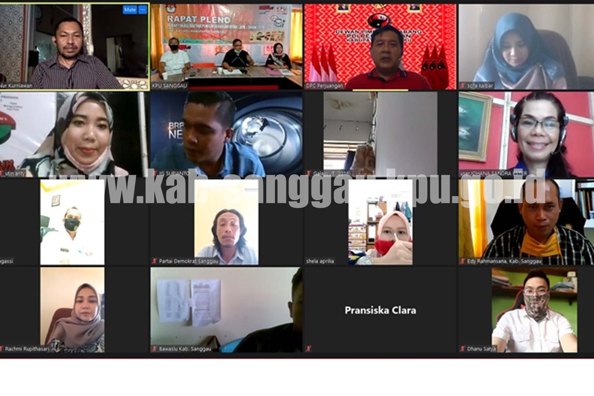Rapat Pleno yang diselenggarakan secara Virtual menggunakan Aplikasi Zoom ini dipimpin oleh Ketua KPU Kabupaten Sanggau, Martinus Sumarto dihadiri oleh Komisioner dan Sekretariat KPU Kab Sanggau , Komisioner BAWASLU Kab Sanggau, Perwakilan Parpol dan Dinas Dukcapil Kabupaten Sanggau.