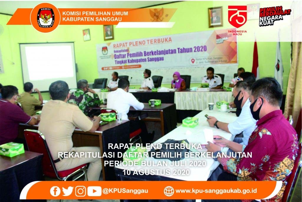 Sanggau, kab-sanggau.kpu.go.id | KPU Kab Sanggau kembali melaksanakan Rapat Pleno Terbuka Rekapitulasi Daftar Pemilih Berkelanjutan (DPB) Periode Bulan Juli Tahun 2020, Senin (10/08/2020) pagi, bertempat di aula Rapat Kantor KPU Kabupaten Sanggu Jl. Jend. Sudirman km 9 Bunut Sanggau.