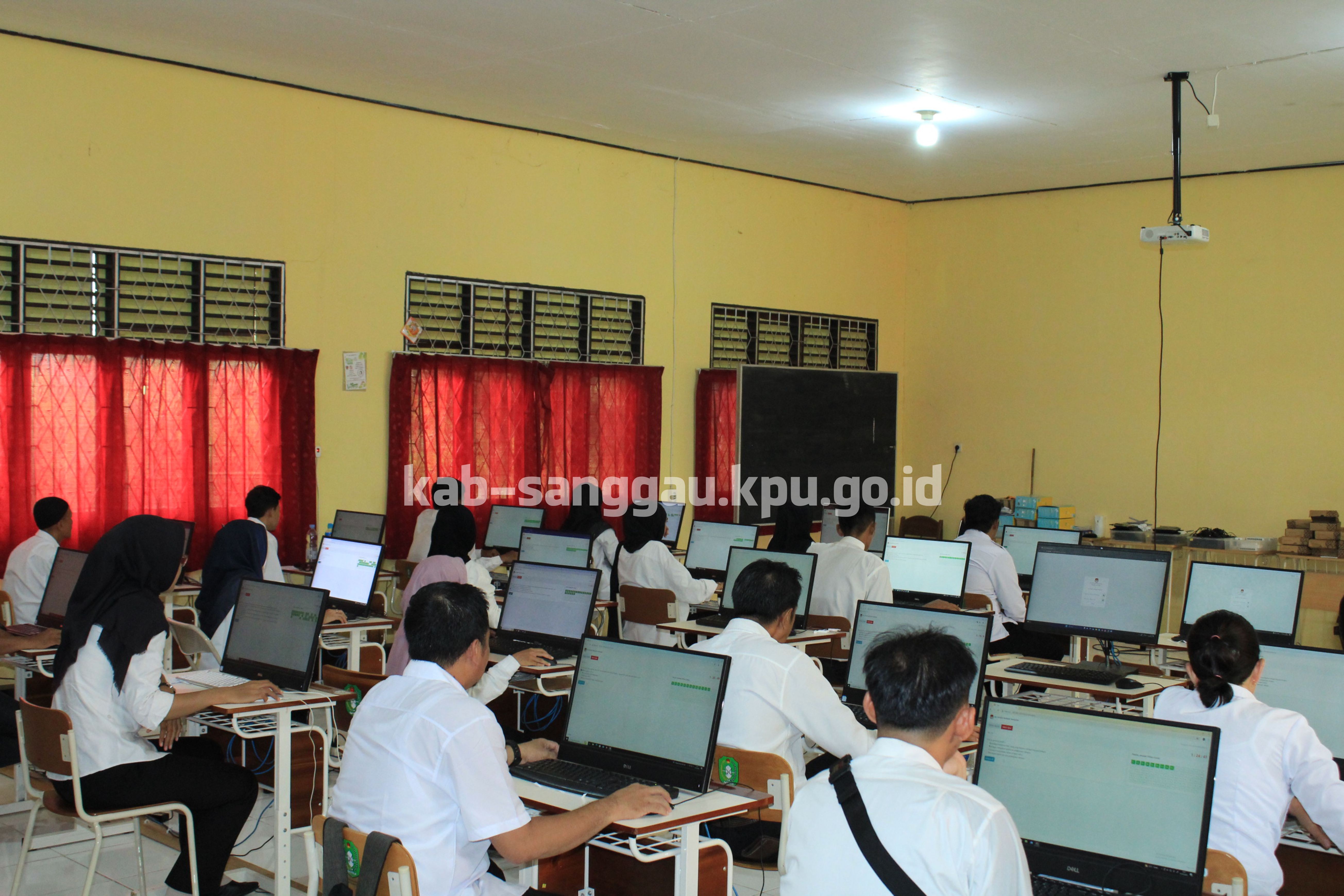 Sanggau, kab-sanggau.kpu.go.id I Sebagai kelanjutan dari tahapan rekrutmen Calon Anggota Panitia Pemilihan Kecamatan (PPK) Pilkada Serentak Tahun 2024 setelah seleksi administrasi berkas pendaftar, KPU Kabupaten Sanggau melaksanakan seleksi tertulis berbasis komputer atau Computer Assisted Test (CAT) bertempat di SMK Negeri 1 Sanggau, Selasa (07/05/2024).