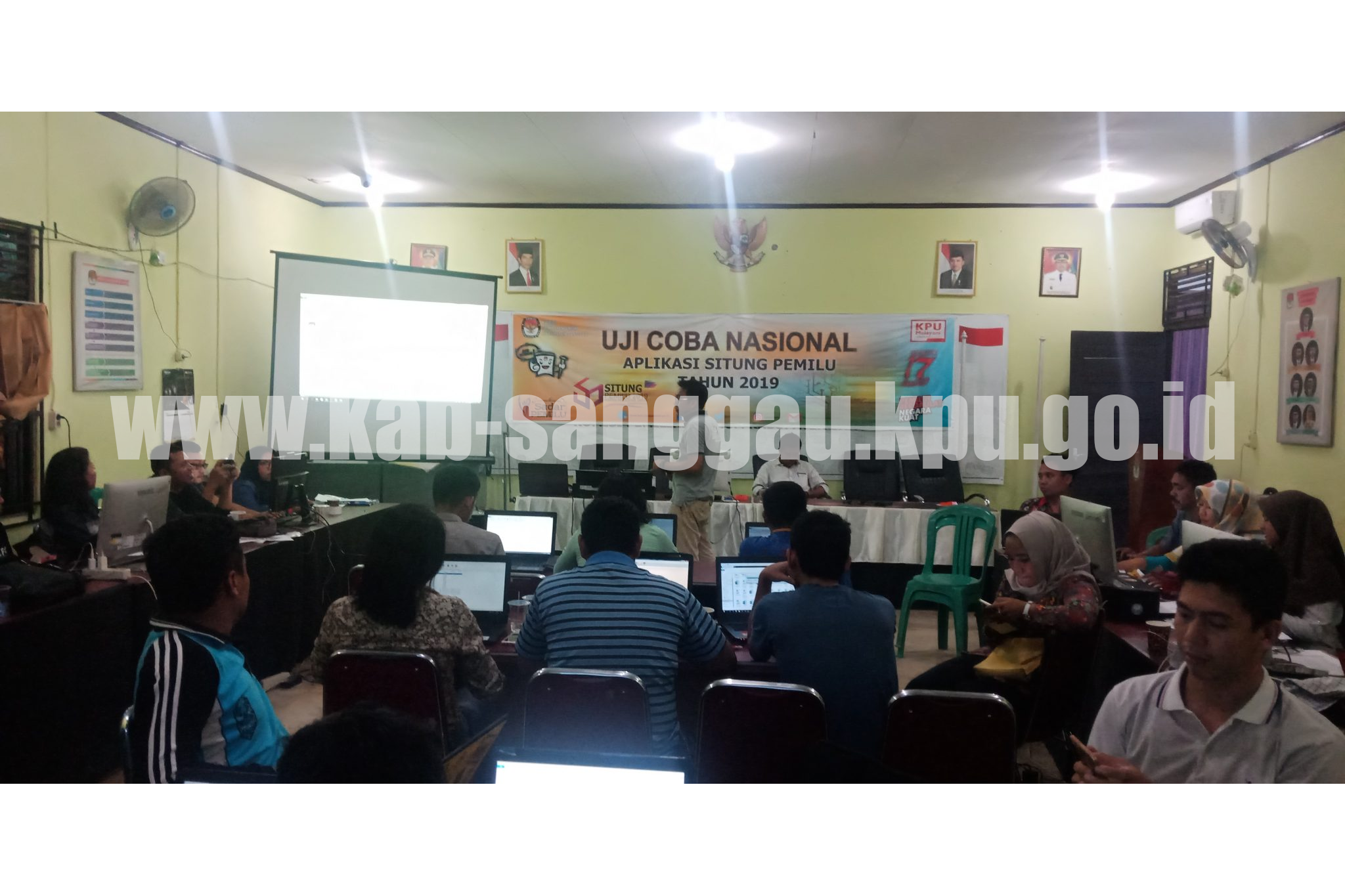 Sanggau, kab-sanggau.kpu.go.id | KPU Sanggau melaksanakan ujicoba nasional sistem informasi penghitungan suara (situng), selasa (9/4/2019) bertempat di aula Kantor KPU Kabupaten Sanggau.